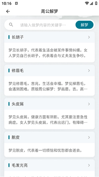 3、支持对周公解梦的内容进行搜索查询,以便获取并查看你想要了解的相关内容。
