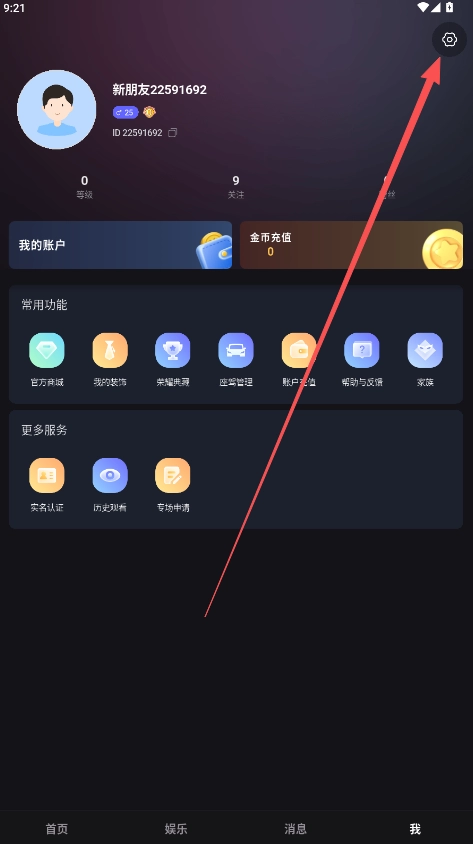 1、登录套路直播账号,进入个人主页信息栏,点击右上方的“设置”选项。