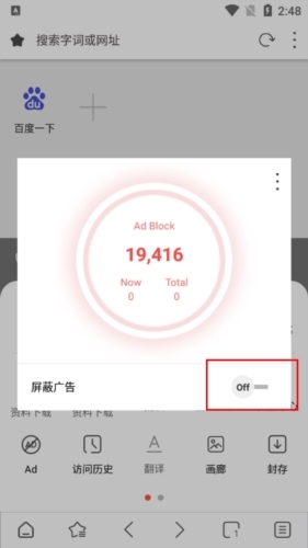 3、最后开启屏蔽广告功能,这样后续浏览任何网站时,系统都会自动清除广告!