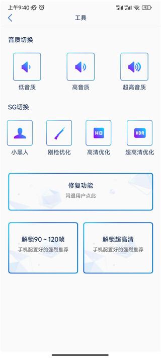 7、在这里你还能切换音质、SG等设置,并且可以解锁超高清画质和120帧帧率。