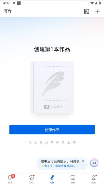 2、选择作品类型,长篇小说、短篇故事、对话小说。