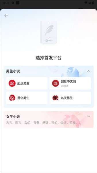 3、先选定目标读者群体,再挑选合适的发布平台,接着填写作品名称、作品简介、作品类型等相关信息,点击【完成】按钮后,就能进入创作界面开启你的写作之旅了。