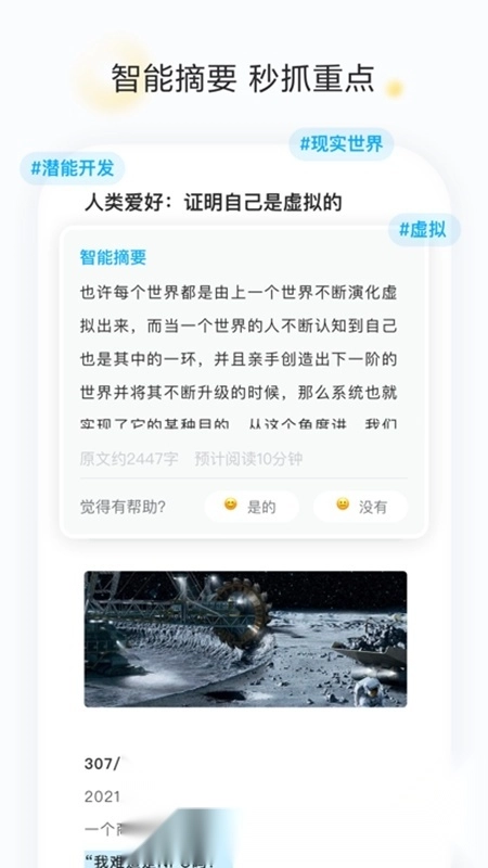 1、能针对篇幅较长的文章,自动生成简洁明了的摘要以及关键词标签;