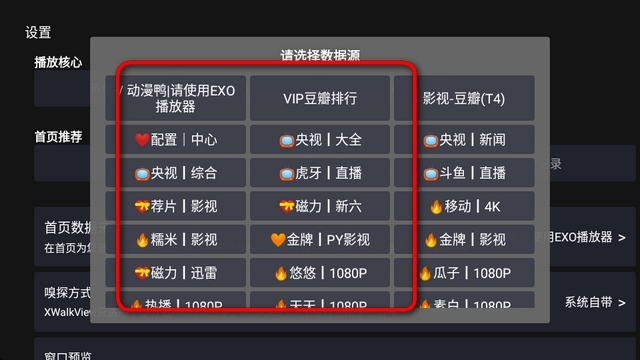 6、可以看到有很多播放源,选择后就可以切换了。