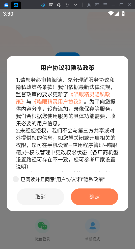 1、在本网站将喵眼精灵安卓版安装至手机,完成软件注册登录信息的填写,也可直接通过微信登录。
