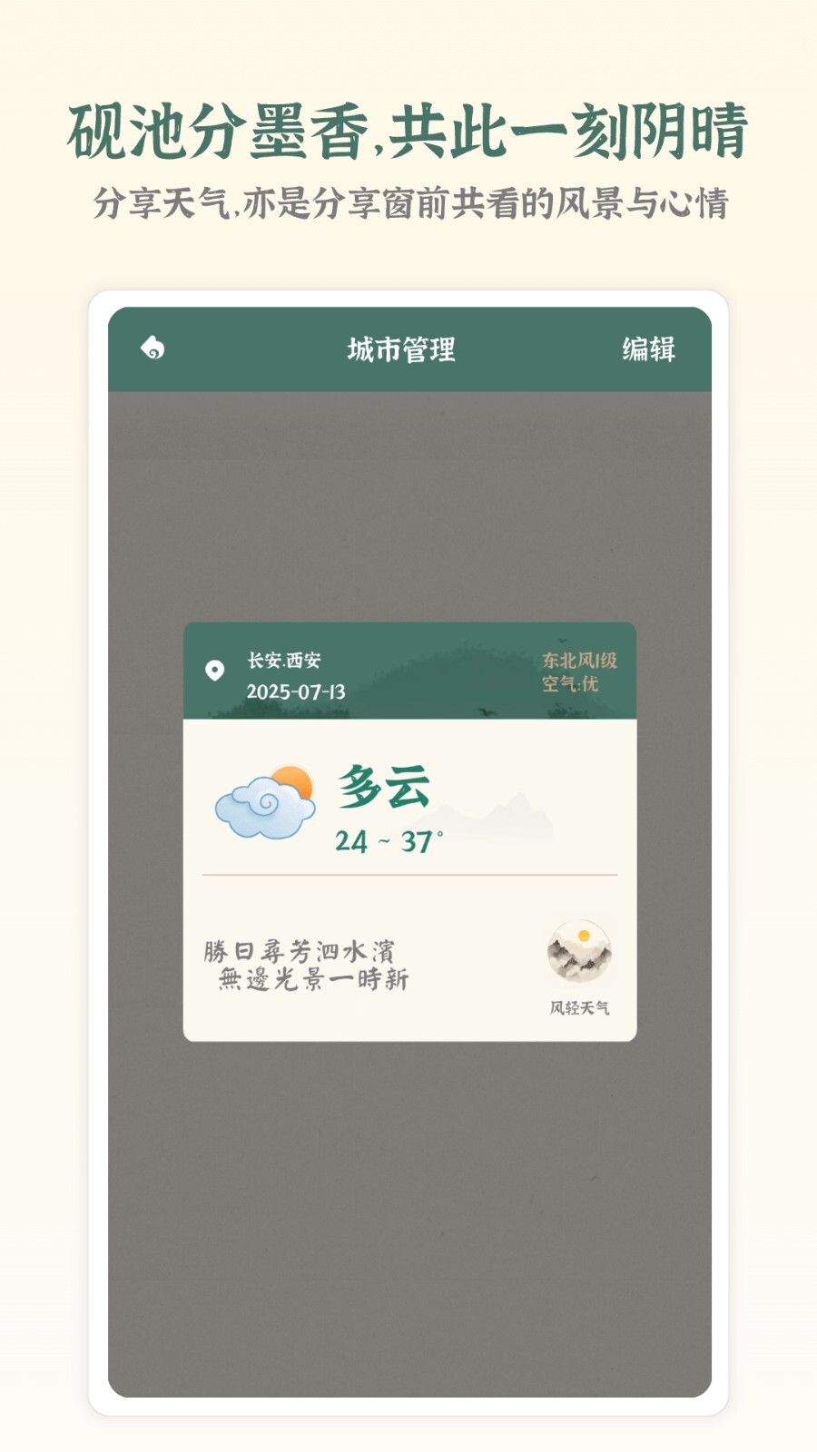 风轻天气是一款自由天气查询应用,它能为你提供精准的天气服务,让你获取最新的天气信息。每个天气状况都搭配了相应的画面内容,以清晰直观的方式呈现,看起来十分明了,快来体验吧。