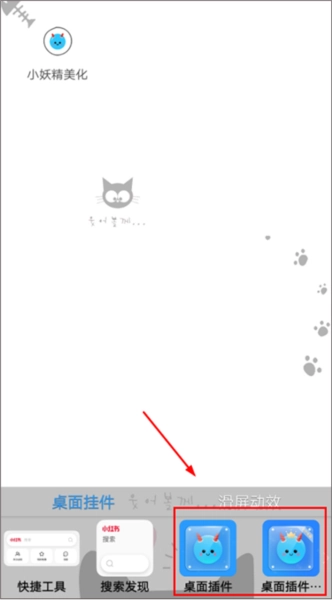 4、回到手机桌面,长按桌面空白区域,等出现插件选项后,找到小妖精美化插件;