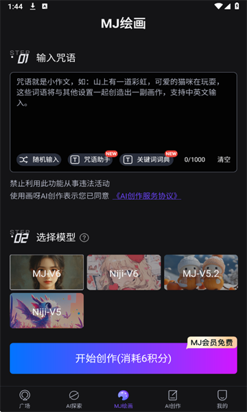 3. 在其中开启签到以获取更多积分,消耗积分即可开启创作功能。