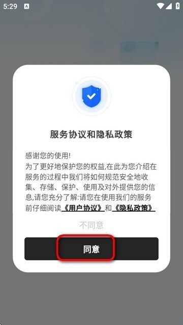 1、打开明悟知堂后先要同意用户协议。