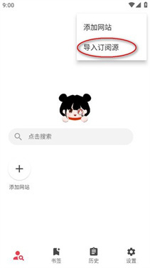1、打开软件后,点击右上角的三个点,然后选择“导入订阅源”(新版中该选项已调整为“设置链接订阅源”);