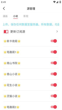 2、这里包含“漫画”“小说”“影视”三类内容,需要分别进行导入操作。