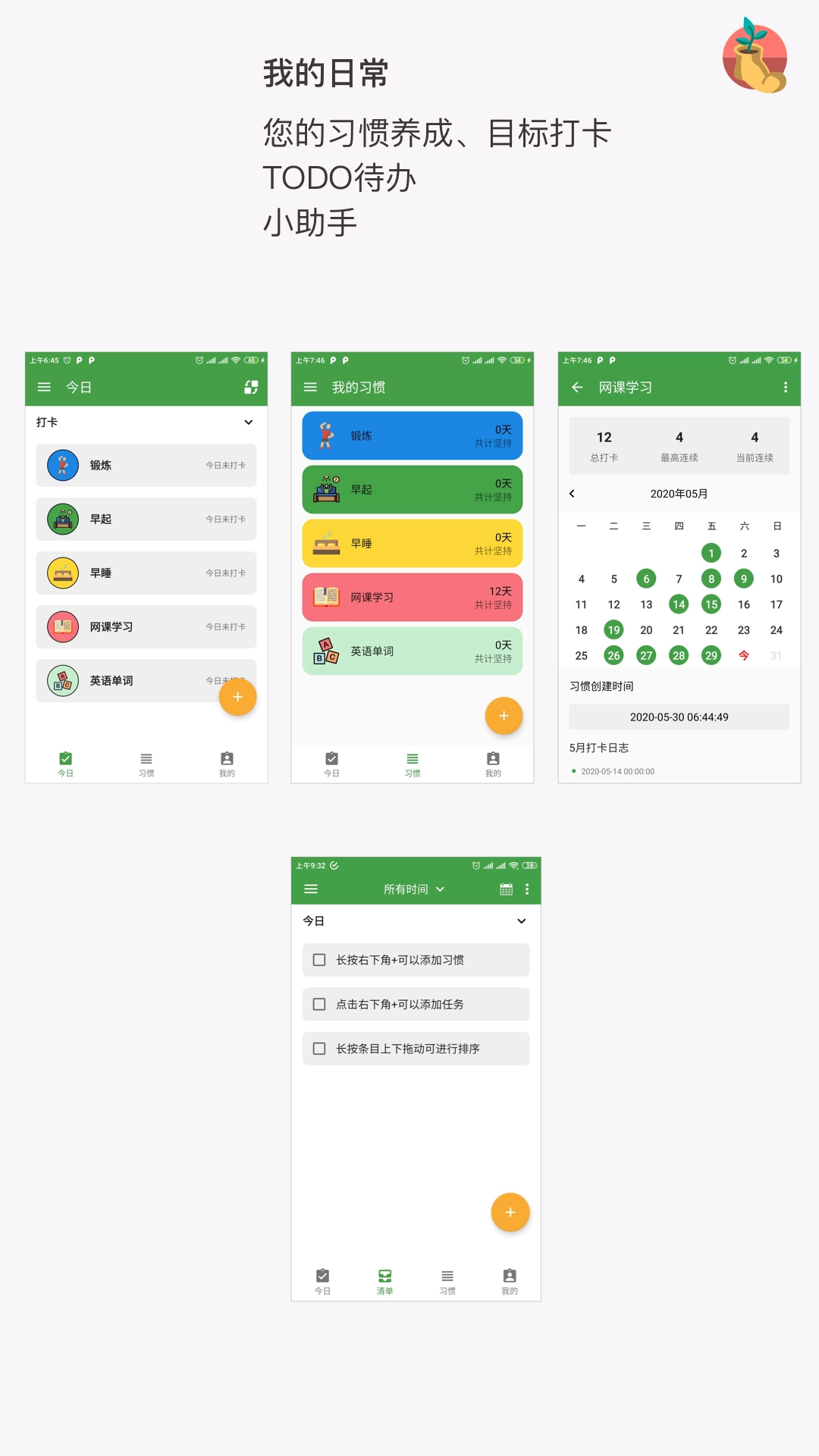 《我的日常》是一款助力大众记录生活中各类习惯的软件。每个人都有专属的生活习惯,而记录日常本身也会成为一种习惯——记录生活日常的过程,其实是在为自己创造美好回忆,同时还能帮助我们更好地规划生活:比如助力养成规律作息、设置每日待办提醒,还支持数据备份功能,能有效保护用户信息安全,堪称贴心的生活小助手。
