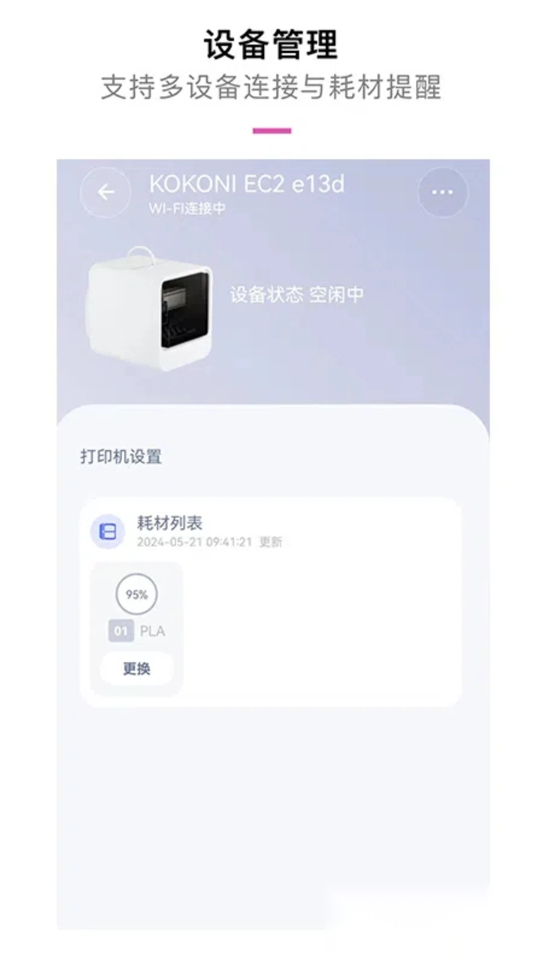 9.对设备状态显示及页面结构进行了优化,现在在首页和设备页可以更直观地查看打印进度。