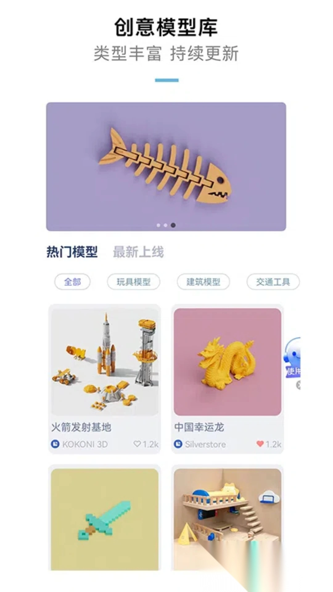 模型库在不断增添新的内容,其中涵盖了可爱的宠物、精巧的建筑以及实用的物件等各种各样的创意。