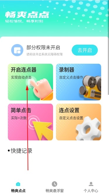 畅爽点点是一款专业的连点器工具,用户可借助其丰富的触屏功能实现连续点击操作,适用于多种不同场景。根据场景差异,点击频率也会相应调整,只需选定特定区域,就能自动进行反复点击和重复操作,让你轻松体验便捷智能的使用感受,快来试试吧。