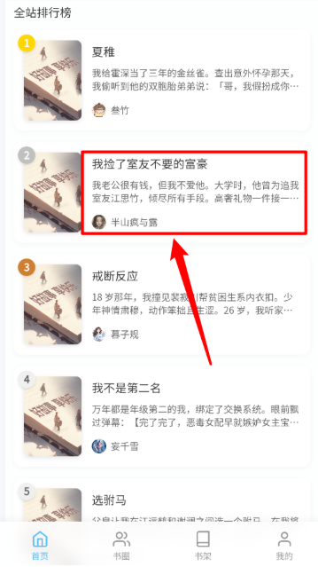 1、打开软件,在首页全站排行榜中选择听书的小说。