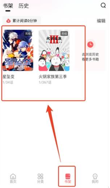 4、回到软件界面,点击主页面底部的【书架】选项,就能查看已收藏的作品了。