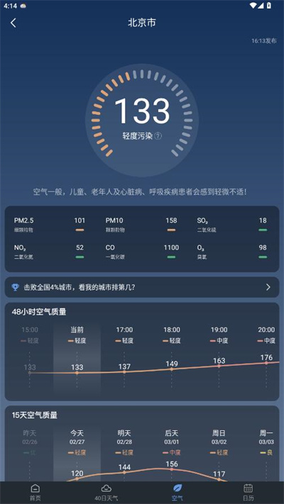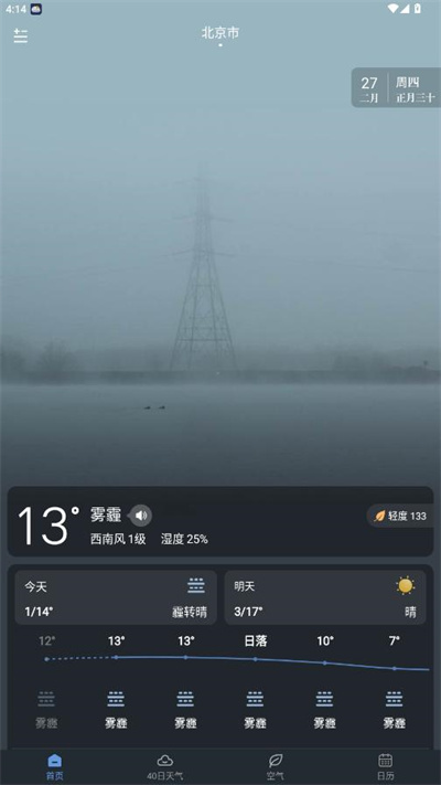 还可以点击查看40日天气,空气情况和日历
