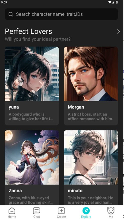进入软件后,系统会依据你所选的类型为你推送内容,每个AI角色都具备独特的性格特质与背景故事。