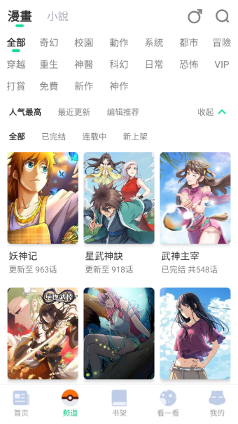 漫咖漫画是一款资源极为丰富的阅读应用,它融合了漫画与小说内容,用户能在这里尽情浏览海量作品。该软件的分类体系十分清晰,以漫画板块为例,就涵盖了奇幻、校园、动作、都市、冒险、穿越等多个类别,大家可以根据个人喜好进行筛选,当然,也能直接通过搜索功能找到心仪的作品。此外,软件还设有一个热闹的交流社区,用户可以在其中与同好们互动交流,整体而言是一款相当不错的应用。