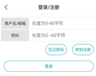 3、输入用户名、邮箱和密码登录,如果没有账号,可点击【转到注册】按钮