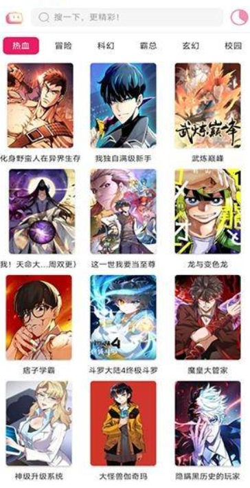 1、打开后能看到各式各样的漫画,首页顶部设有搜索框,可直接输入漫画名称进行查找。
