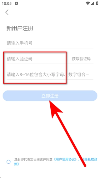 输入验证码、设置好密码后,点击“立即注册”按钮,就能完成账号注册的整个流程。
