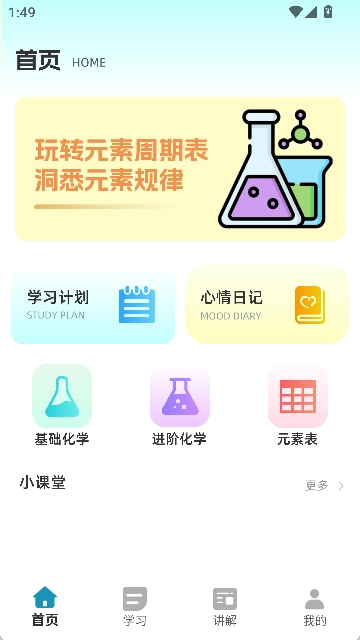 2.首页设有基础化学、进阶化学以及元素周期表等栏目