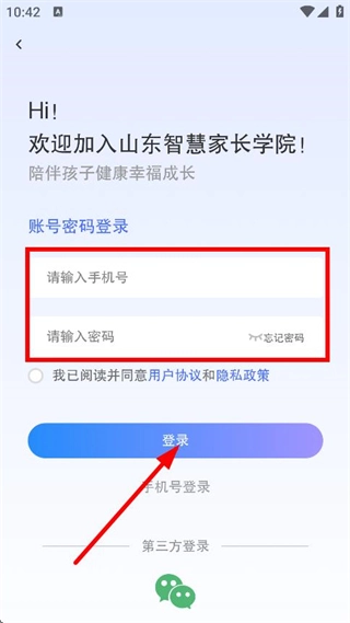 在账号密码登录界面,填写手机号码与密码后,点击登录按钮,即可完成登录流程。
