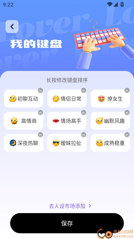 LOVER键盘手机版是一款具备独特恋爱聊天话术键盘功能的应用软件,先进的聊天键盘辅助工具,可满足用户在各类场景下的话术键盘使用与回复需求。它能帮助用户快速获取更多高情商回复话术,学习实用的恋爱聊天开场白技巧,助力大家轻松提升脱单成功率。此外,软件还设有贴心的聊天亲密度设置,让智能话术键盘的使用更精准;同时提供聊天人设展示功能,方便用户打造专属的聊天风格。对这类应用感兴趣的小伙伴,不妨来本站体验一番。