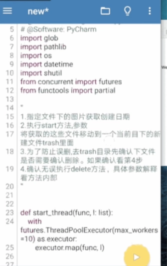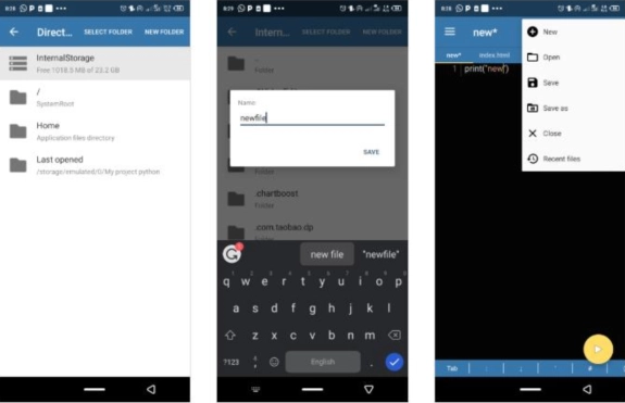 和其他代码编辑器类似,Pydroid 3的界面支持用户把文件存储到设备里任意命名的文件夹中。要是想建立项目文件夹,借助它的文件保存功能也能新建文件夹。