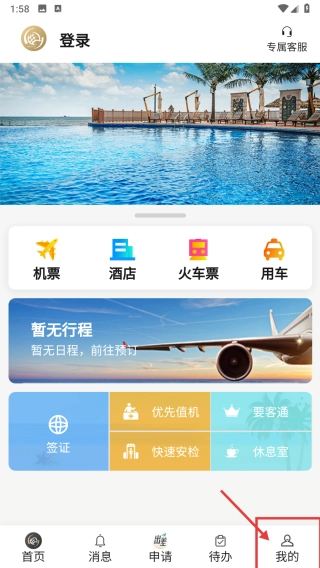 打开出行服务类应用,点击底部的“我的”选项,即可进入个人中心页面。