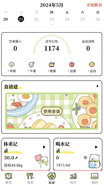 2.根据你的饮食,来记录你摄入的热量