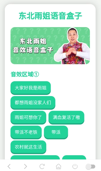 东北雨姐语音盒是以知名网络博主【东北雨姐】为原型打造的语音类产品,里面收录了大量她的经典语音内容,像“大家好我是雨姐”“带派不老铁”“愁眉苦脸的”“佩斯点火”这些标志性语句全都包含在内。这款语音盒的操作方式十分简便,只需点击就能播放语音,完全没有使用门槛,是一款很有魔性的趣味产品。