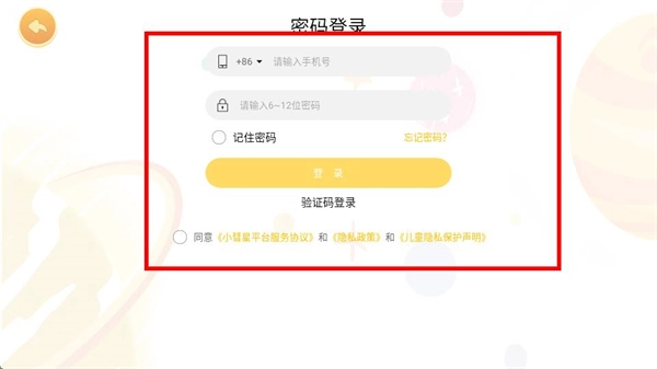在密码登录界面,填写相关信息,勾选协议后点击登录按钮,即可完成账号登录流程。