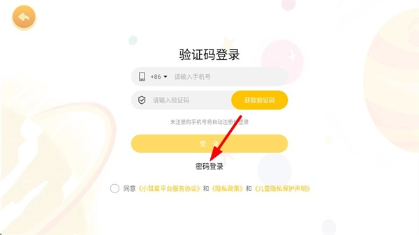在登录页面找到密码登录选项并点击,即可进入密码登录页面。