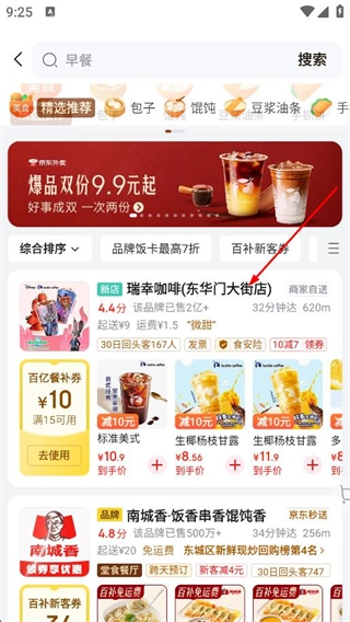 在外卖频道页面,选择目标商家,进入商家店铺页。