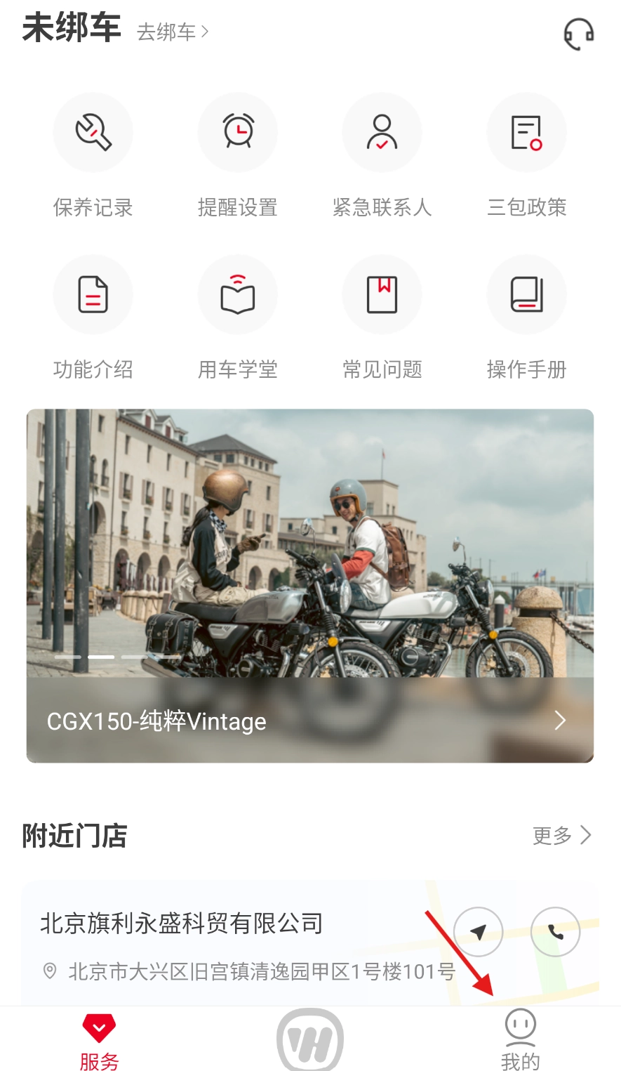 打开五羊本田应用,在主界面的下方位置找到“我的”选项,点击该选项即可进入个人相关页面。