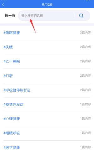 进入乙十睡眠医生后,在首页顶部的导航栏中找到“热点话题”板块并点击进入,即可浏览最新的健康相关话题内容。