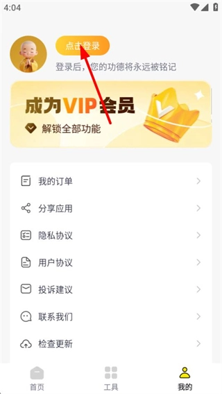 在功德页面,点击右下角我的选项,进入个人页面。