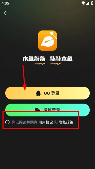 在登录选择页面,勾选相关协议后,选择QQ选项就能完成登录操作。