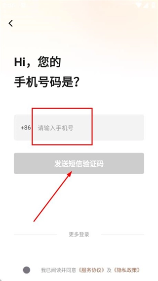 在手机验证登录界面输入手机号,勾选相关协议后,点击获取短信验证码。