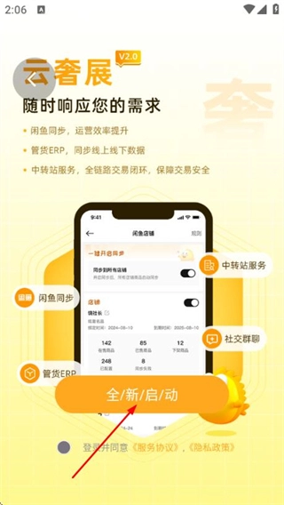 在云奢展页面勾选协议,点击“全新启动”按钮,即可进入登录页面。