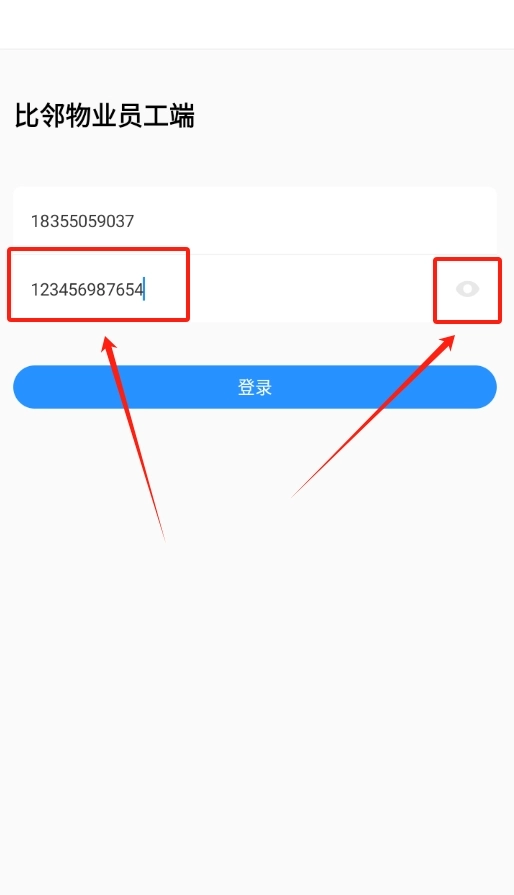 在登录页面输入手机号与密码后,点击密码框旁那个处于闭合状态的小眼睛图标。