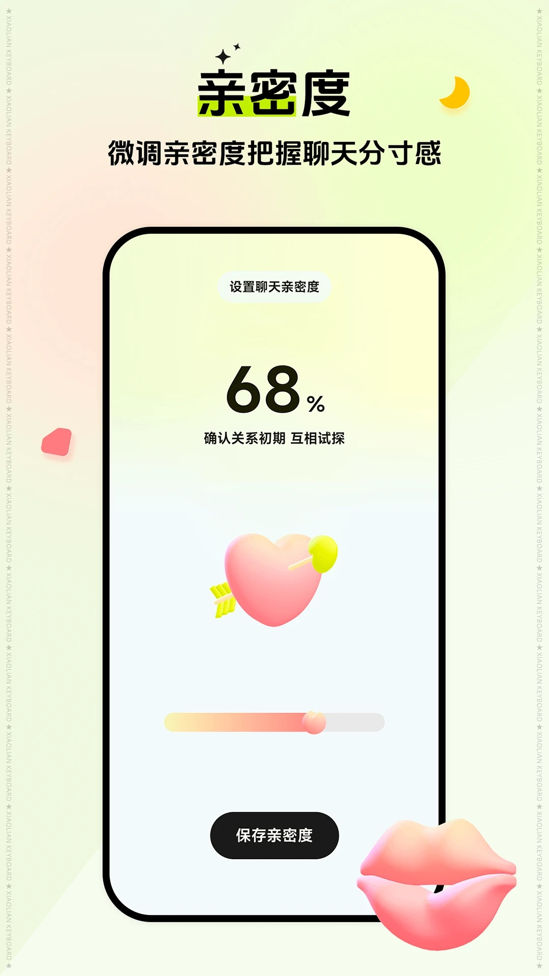 小恋键盘是一款出色的聊天服务软件,用户能轻松开展聊天交流,还可个性化定制人设,让键盘交流体验更佳,为生活增添轻松感,快速完成交流输入。软件操作简单易上手,亲密度设置也能轻松搞定,助力畅快聊天,快来体验便捷输入吧!
