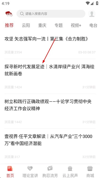 理响云阳在首页选择目标新闻,进入新闻详情页面。