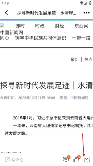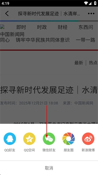 在分享菜单里挑选对应的分享渠道,就能完成新闻分享的操作。