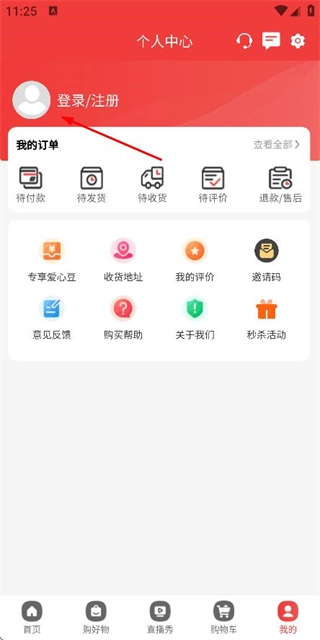 在首页点击底部我的,进入个人中心页面。