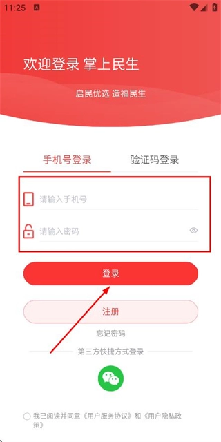 在登录页面输入手机号与密码,勾选相关协议后,点击登录按钮即可完成账号登录流程。