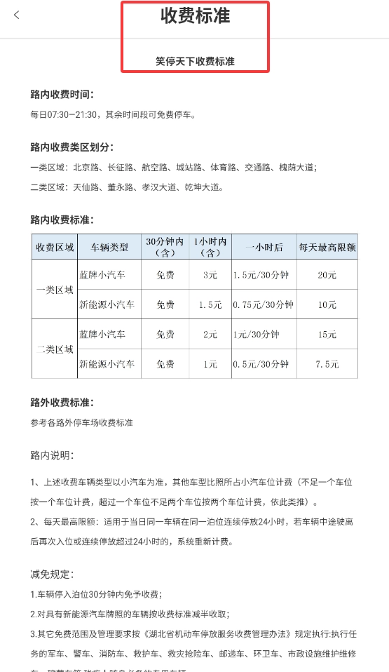用户可借助“收费标准”功能实时查询各停车场的收费规则,便于提前规划出行安排。